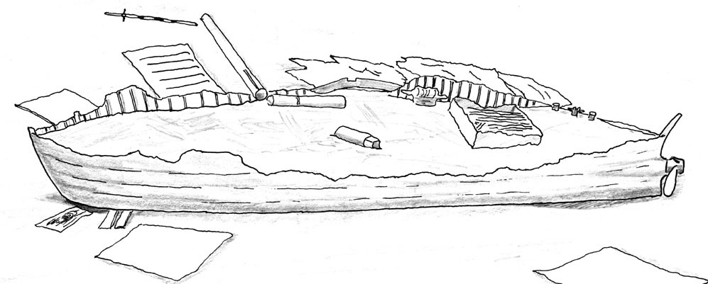 anden revle ca. 400 meter fra land, med agterenden ret mod søen, så det var meget vanskeligt at få forbindelse med