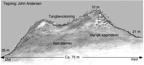 Naturdyk på fiskebanke med stærkt kuperede bundforhold.